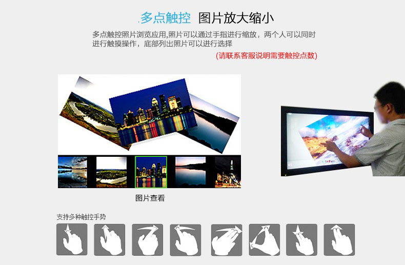 触摸点数:标配10点触摸,可实现放大缩小图片等多点触摸功能